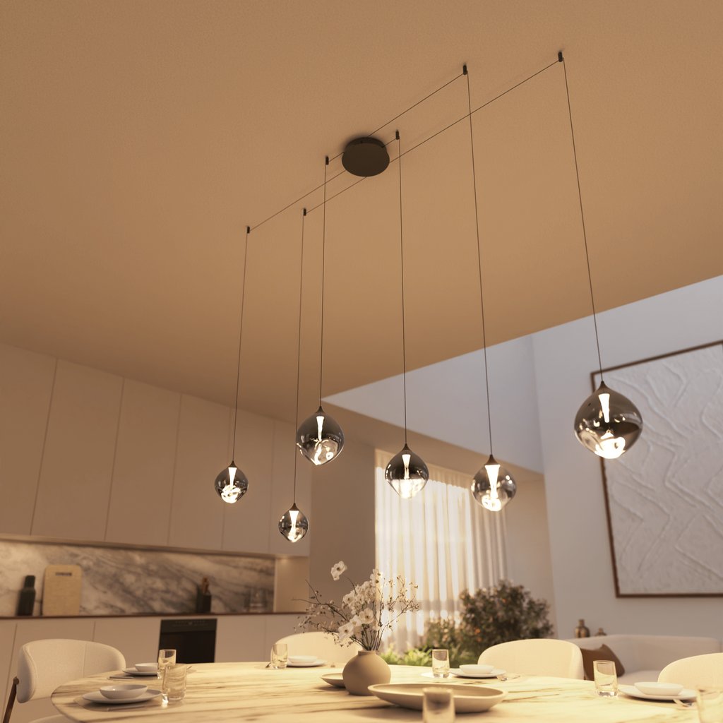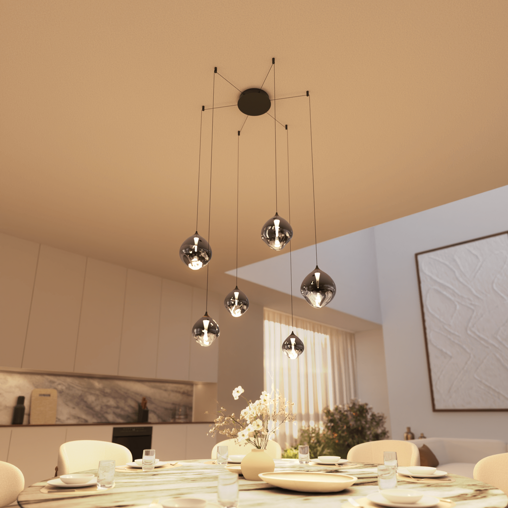 La suspension Japandi est conçue pour diffuser une lueur chaude et agréable qui remplit la pièce sans être agressive. Que vous partagiez un dîner à la table de la cuisine ou que vous vous détendiez dans la chambre, cette lampe crée l’ambiance parfaite.